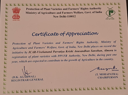 पौधा किस्म और कृषक अधिकार संरक्षण प्राधिकरण, कृषि एवं किसान कल्याण मंत्रालय, भारत सरकार द्वारा भाकृअनुप-विवेकानंद पर्वतीय कृषि अनुसन्धान संस्थान, अल्मोड़ा द्वारा अनुशंसित उत्तराखण्ड के ग्राम हवालबाग, जनपद, अल्मोड़ा के प्रगतिशील कृषक श्री भूपेन्द्र जोशी को “प्लांट जीनोम सेवियर कृषक पुरुस्कार 2022-23” से सम्मानित किया गया है। यह पुरस्कार देश के उन कृषकों को दिया जाता है जो पारंपरिक फसलों के संरक्षण, संवर्धन एवं सुधार में उल्लेखनीय योगदान दे रहे हैं। इस सम्मान में रु. 1.5 लाख की नकद राशि, प्रशस्ति पत्र एवं स्मृति चिन्ह शामिल हैं।