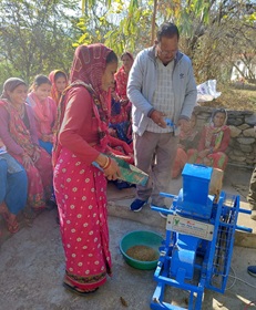 कार्यक्रम के दौरान मशीन का सजीव प्रदर्शन भी किया गया, जिसमें गाँव की महिला किसानों ने स्वयं मंडुवा थ्रेसर चलाकर इसके सरल एवं सहज संचालन का अनुभव प्राप्त किया।