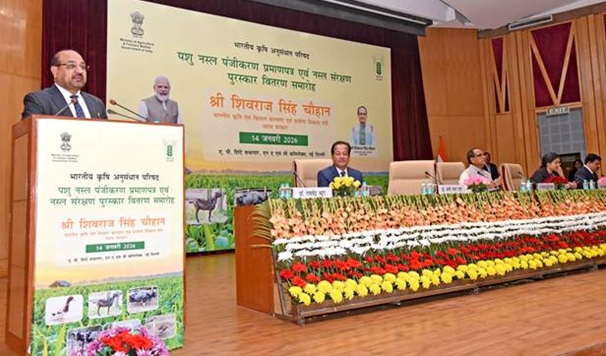 भारतीय कृषि अनुसंधान परिषद (भाकृअनुप) ने आज नई दिल्ली स्थित ए. पी. शिंदे ऑडिटोरियम में पशु नस्ल पंजीकरण प्रमाणपत्र एवं नस्ल संरक्षण पुरस्कार वितरण कार्यक्रम का आयोजन किया। कार्यक्रम में केंद्रीय कृषि एवं किसान कल्याण तथा ग्रामीण विकास मंत्री श्री शिवराज सिंह चौहान मुख्य अतिथि के रूप में शामिल हुए।