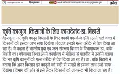 Professor Panjab Singh, Former Vice-Chancellor, BHU & Former Secretary (DARE) & Director General (ICAR) viewed that New Agricultural Laws will facilitate in creation of storage of grains and food processing hubs. The laws will help the farmers for not visiting the purchasing centres; rather the market will now directly reach the farmers' field.