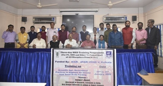 A 3-day Human Resource Development Programme on ‘Scientific Agri-Horticultural Practices to augment the income from small scale farming’ was organised by the Directorate of Research, Extension & Farms of West Bengal University of Animal and Fishery Sciences (WBUAFS), Kolkata in collaboration with ICAR-Agricultural Technology Application Research Institute, Kolkata for Senior Scientist, SMS, and other technical staff from KVKs of West Bengal.