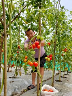 To maintain plant health, he systematically removed lower foliage after flowering and trained the plants by twirling vines around strings at 30 cm height, ensuring good aeration and keeping fruits off the soil. Under this protected organic system, his summer tomato yield reached 6–8 kg per plant, significantly higher than the 4–5 kg per plant typically achieved under open-field winter cultivation. Overall, Mr. Lepcha harvested 180–210 kg of tomatoes from his polyhouse, compared to 90–100 kg during winter from an equivalent area.