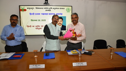 भाकृअनुप-विवेकानन्द पर्वतीय कृषि अनुसंधान संस्थान (वीपीकेएएस), अल्मोड़ा में आज हिन्दी पखवाड़ा (14-30 सितम्बर) का समापन समारोह अत्यंत उत्साह एवं गरिमामयी वातावरण में परिषद गीत के साथ किया गया।