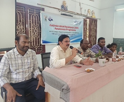 भाकृअनुप-केन्द्रीय मत्स्य प्रौद्योगिकी संस्थान, विशाखापत्तनम अनुसंधान केन्द्र ने भाकृअनुप-केन्द्रीय खारा जलकृषि संस्थान (सीआईबीए), चेन्नई के सहयोग से 6-7 मार्च, 2025 को पूर्वी गोदावरी जिले (अब काकीनाडा जिला) के काजुलुरु और ए.वी. नगरम गांवों में झींगा उत्पादक किसानों के लिए रोगाणुरोधी प्रतिरोध (एएमआर) तथा सफेद मल सिंड्रोम (डब्ल्यूएफएस) पर दो जागरूकता कार्यक्रम आयोजित किया। भाकृअनुप के रोगाणुरोधी प्रतिरोध पर अखिल भारतीय नेटवर्क परियोजना (एआईएनपी-एएमआर) के तहत आयोजित इन सत्रों का उद्देश्य रोगाणुरोधी प्रतिरोध के महत्वपूर्ण मुद्दों के बारे में किसानों के बीच जागरूकता बढ़ाना था।